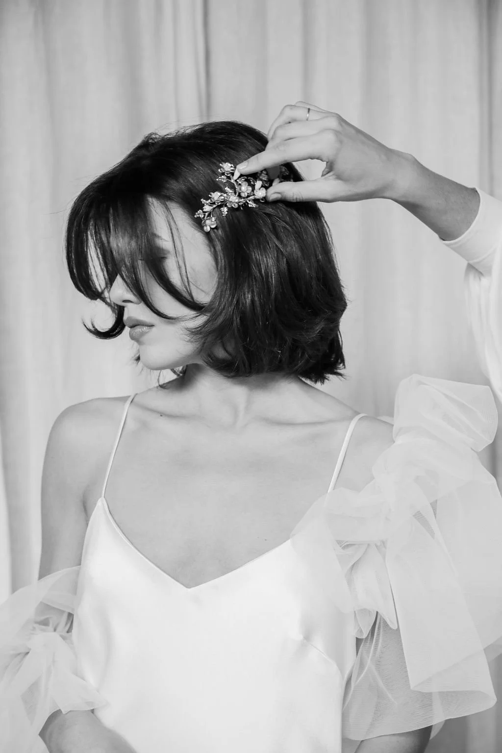 Incorporating the finest luxe fabrics and materials — components that really speak for themselves — our aim when designing is simple: create pieces that our brides feel lovely & completely like themselves in. This means allowing the materials we source and create to dictate their own application. Each piece is, therefore, artfully crafted by hand with careful intent and purpose to curate a collection of refined, modern, effortless accessories.